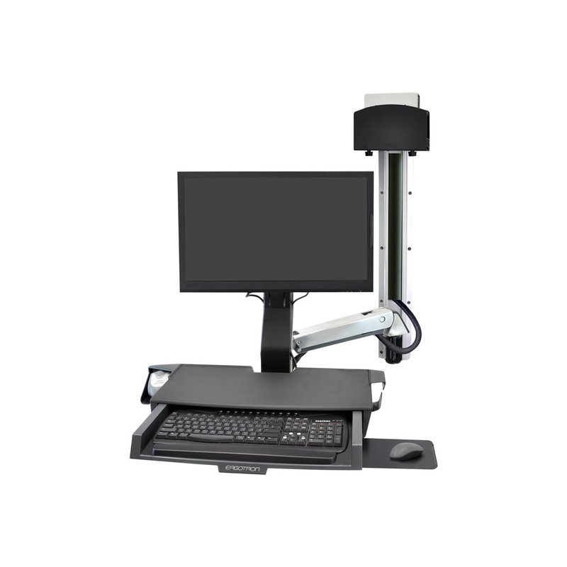 Ergotron StyleView Sit-Stand Combo System with Worksurface – Kit de montaje (asa, soporte para CPU, 2 fundas para pistas, 2 canales de cable, reposamuñecas, montaje de pantalla, bandeja de teclado, montaje de CPU en pared, bandeja corredera para ratón, so