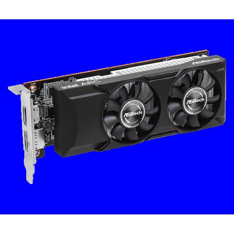 Asrock Intel Arc A310 Low Profile 4GB. Familia de procesadores de gráficos: Intel, Procesador gráfico: Arc A310, Frecuencia del procesador: 2000 MHz. Capacidad memoria de adaptador gráfico: 4 GB, Tipo de memoria de adaptador gráfico: GDDR6, Ancho de datos: 64 bit. Máxima resolución: 7680 x 4320 Pixeles. Versión DirectX: 12 Ultimate, Versión OpenGL: 4.6. Tipo de interfaz: PCI Express x8 4.0. Tipo de enfriamiento: Activo, Número de ventiladores: 2 Ventilador(es)