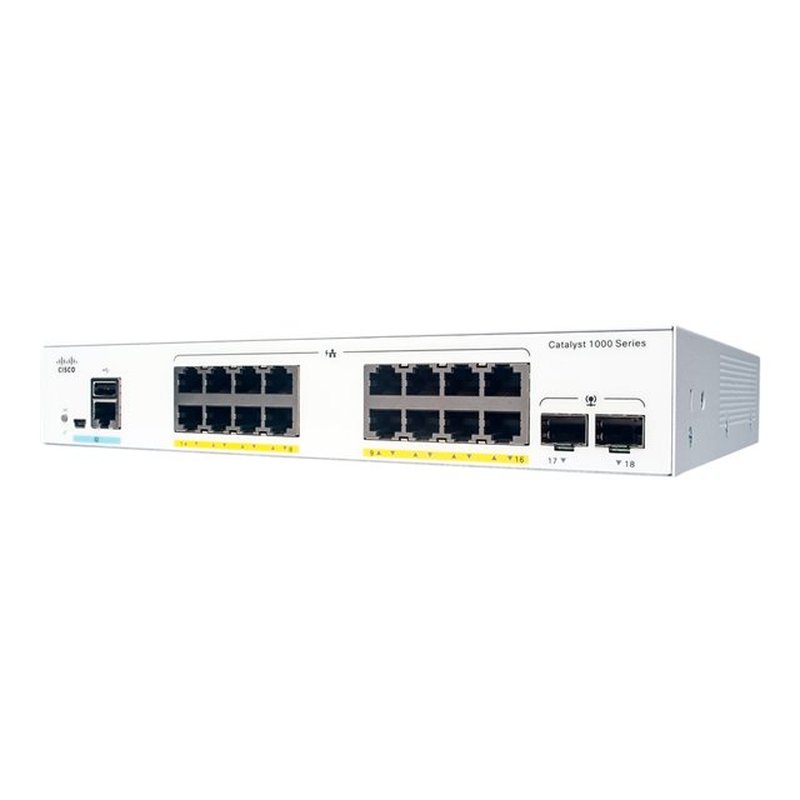 Cisco Catalyst 1000-16FP-2G-L – Conmutador – Gestionado – 16 x 10/100/1000 (PoE+) + 2 x Gigabit SFP (enlace ascendente) – montaje en rack – PoE+ (240 W)