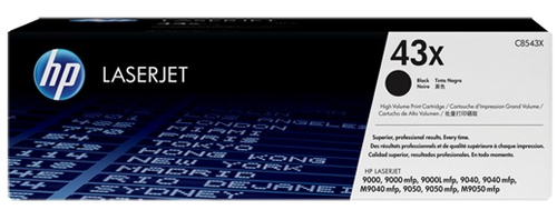 Cartucho de tóner HP LaserJet 43X negro. El rendimiento medio del cartucho es de 30 000 páginas estándar.[3]