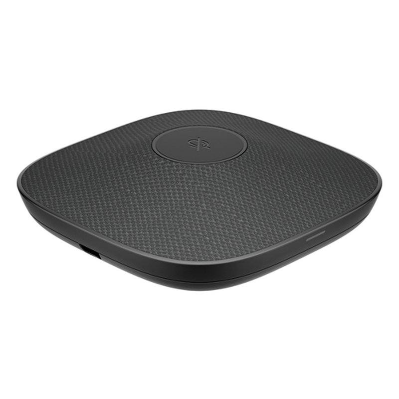 Micrófono de mesa negro HP Poly Studio A2 con placa de montaje y cables de E/S