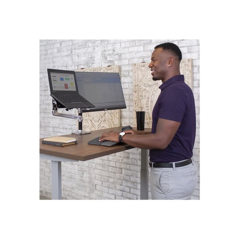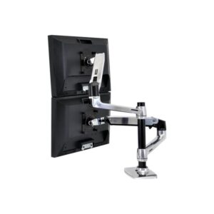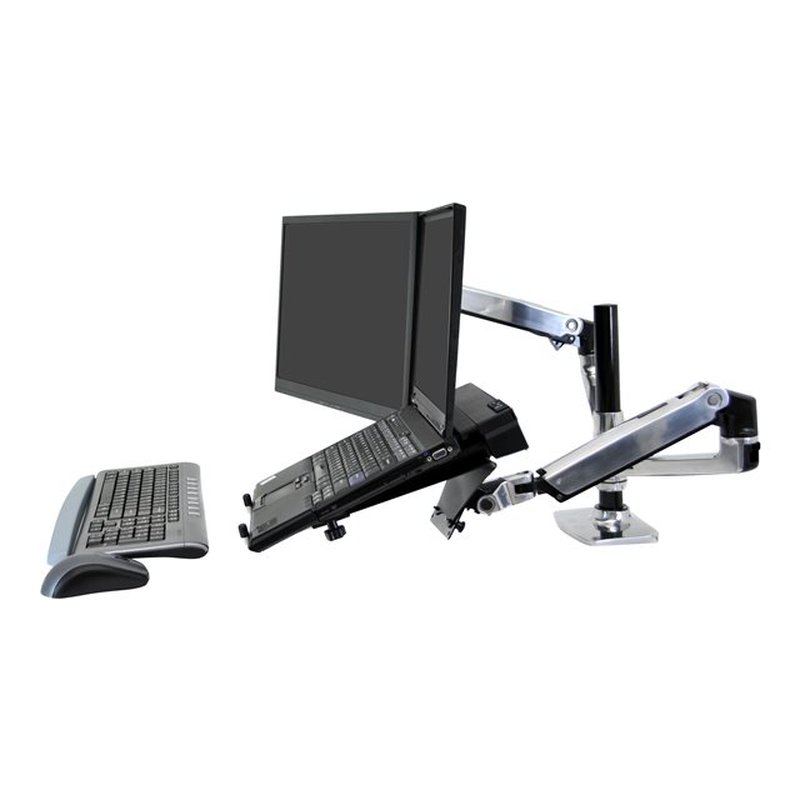 Ergotron LX – Kit de montaje (montaje con pinza de sujeción para escritorio, soporte con arandela, barra, 2 brazos articulados, 2 abrazaderas de extensión, bandeja de portátil) – para 2 pantallas LCD o pantalla LCD y portátil – aluminio pulido – tamaño de