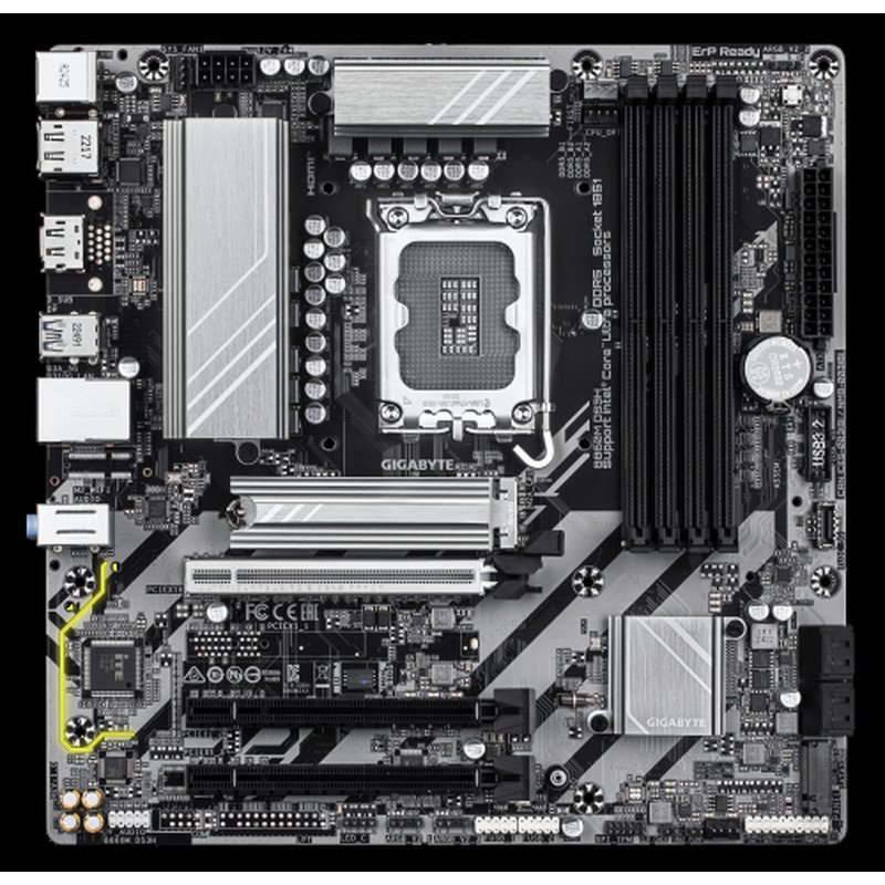 B860M DS3H Placa base – CPUs Intel Core Ultra, VRM de 5+1+2+1 fases, hasta 9066MHz DDR5, 1xPCIe 5.0 + 1xPCIe 4.0 M.2, LAN 2,5 GbE, USB 3.2 Gen 2
