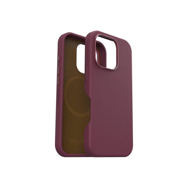 OtterBox Symmetry Series – Carcasa trasera para teléfono móvil – compatibilidad con MagSafe – cuero de cactus, poliuretano – foxberry (rosa) – para Apple iPhone 16 Pro