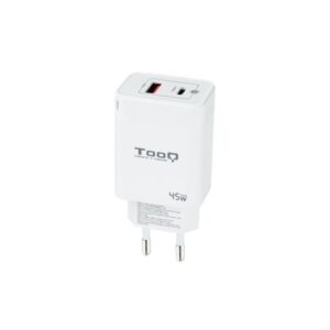 TooQ Cargador de Pared GaN USB-C/PD + USB-A/QC 45W, Blanco