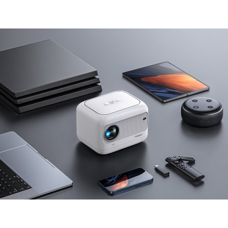 Yaber L1. Tecnología de proyección: LCD, Resolución original del proyector: 720p (1280×720), Relación de aspecto nativa: 4:3. Tipo de fuente luminosa: LED, Duración de la fuente luminosa: 20000 h. Relación de alcance: 1.36:1. Wi-Fi estándares: Wi-Fi 6 (802.11ax). Potencia estimada RMS: 5 W, Formatos de vídeo compatibles: 3GP, AVI, MPG, TRP, TS, MOV, MP4, VOB, Formatos de imagen soportados: PNG, BMP, JPEG, JPG